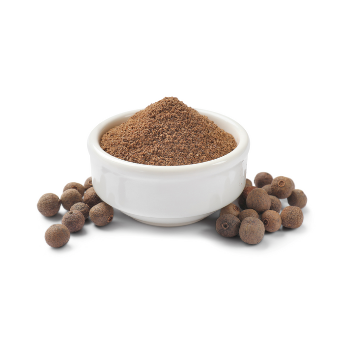 Dehydrated allspice berries (AKA pimento) sourced from Mexico, available whole and powdered.